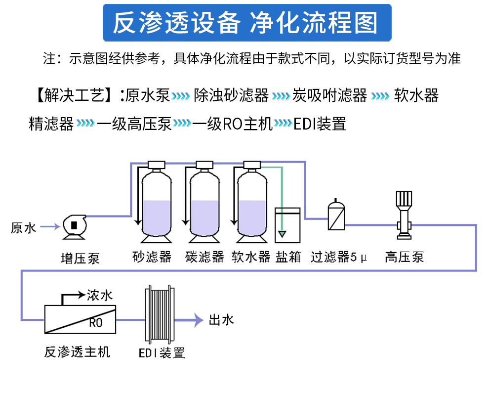 DI是一種將離子交換技術、離子交換膜技術和離子電遷移技術(電滲析技術)相結合的高純水制造技術。該技術利用離子交換能深度脫鹽來克服電滲析極化而脫鹽不干凈,又利用電滲析極化而發生水電離產生H和OH離子實現樹脂自再生來克服樹脂失效后通過化學藥劑再生的缺陷,是20世紀80年代以來逐漸興起的新技術。經過十幾年的發展,EDI技術已經在北美及歐洲占據了相當部分的超純水市場。EDI裝置屬于精處理水系統,一般多與反滲透(RO)配合使用,,組成預處理、反滲透、EDI裝置的超純水處理系統,,取代了傳統水處理工藝的混合離子交換設備。EDI裝置進水要求為電阻率為0.025-0.5MΩ·cm,反滲透設備可以滿足要求。EDI純水設備可生產電阻率高達18MΩ·cm以上的超純水。
