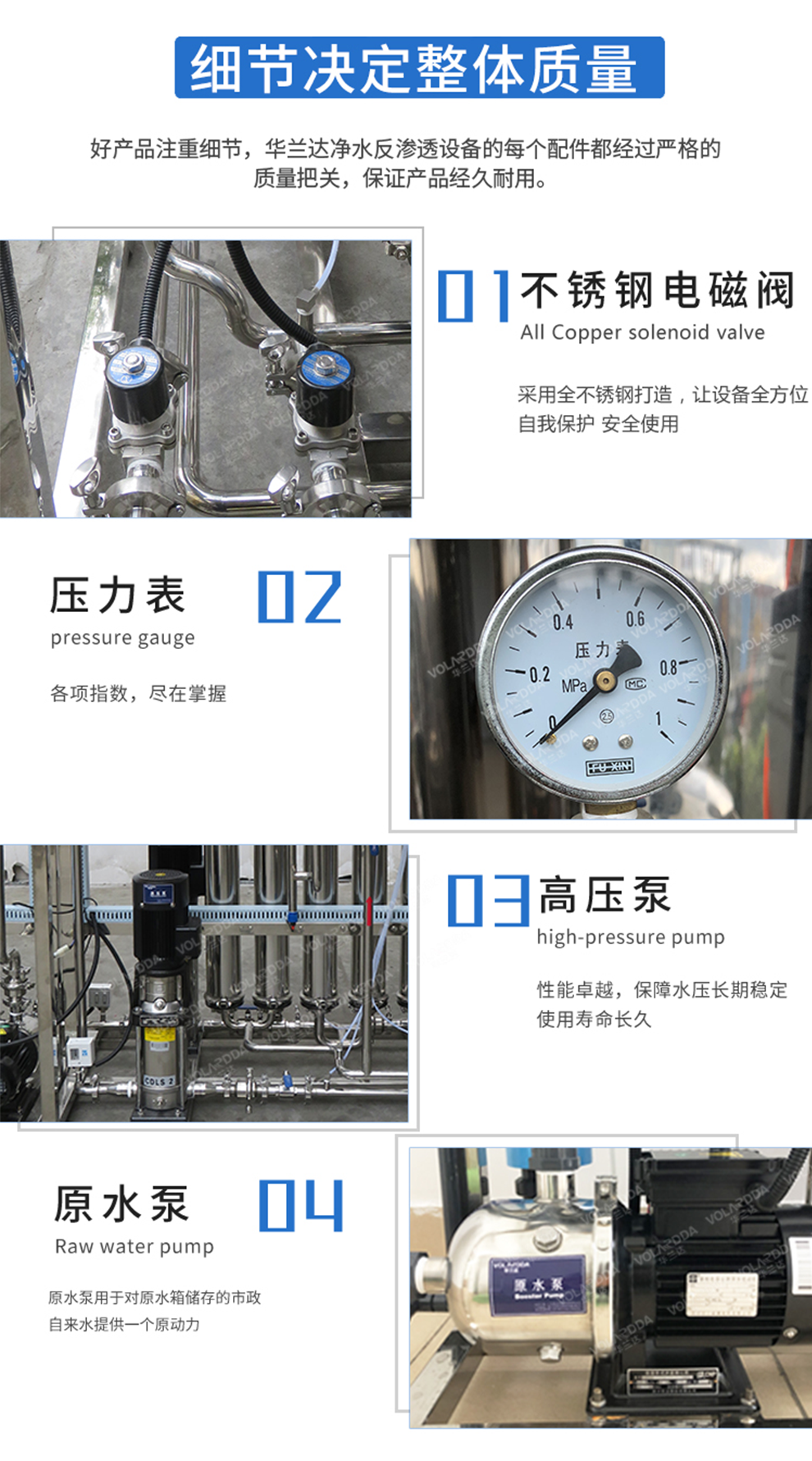 8、產(chǎn)品出水電導(dǎo)率:<10μs/cm(原水<500μs/cm) 出水水質(zhì)達(dá)到:《國(guó)家生活飲用水標(biāo)準(zhǔn)》、《世界衛(wèi)生組織直飲水標(biāo)準(zhǔn)》、《生活飲用水水質(zhì)處理器衛(wèi)生安全與功能評(píng)價(jià)規(guī)范-反滲透處理裝置》、《瓶裝飲用純凈水衛(wèi)生標(biāo)準(zhǔn)(GB17324-1998)》要求。