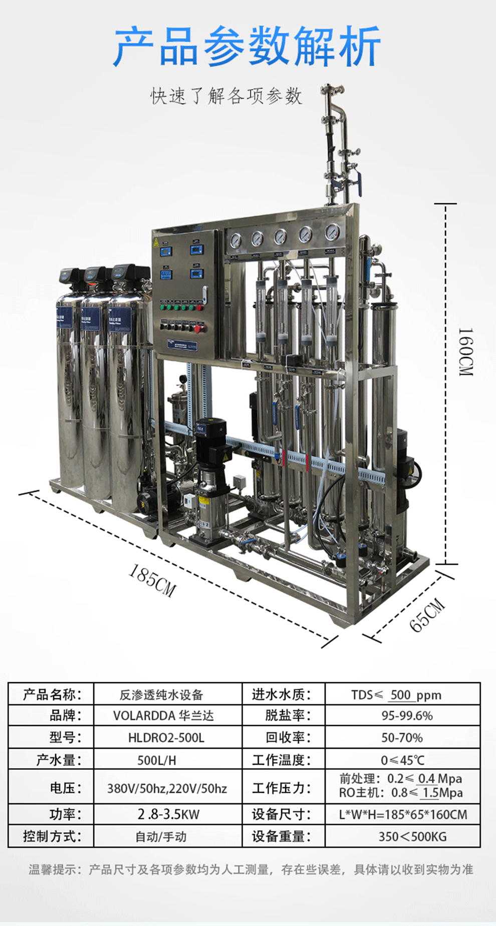 2、脫鹽率:反滲透系統>99%(根據客戶終端用水要求,可定制單級或雙級反滲透機)