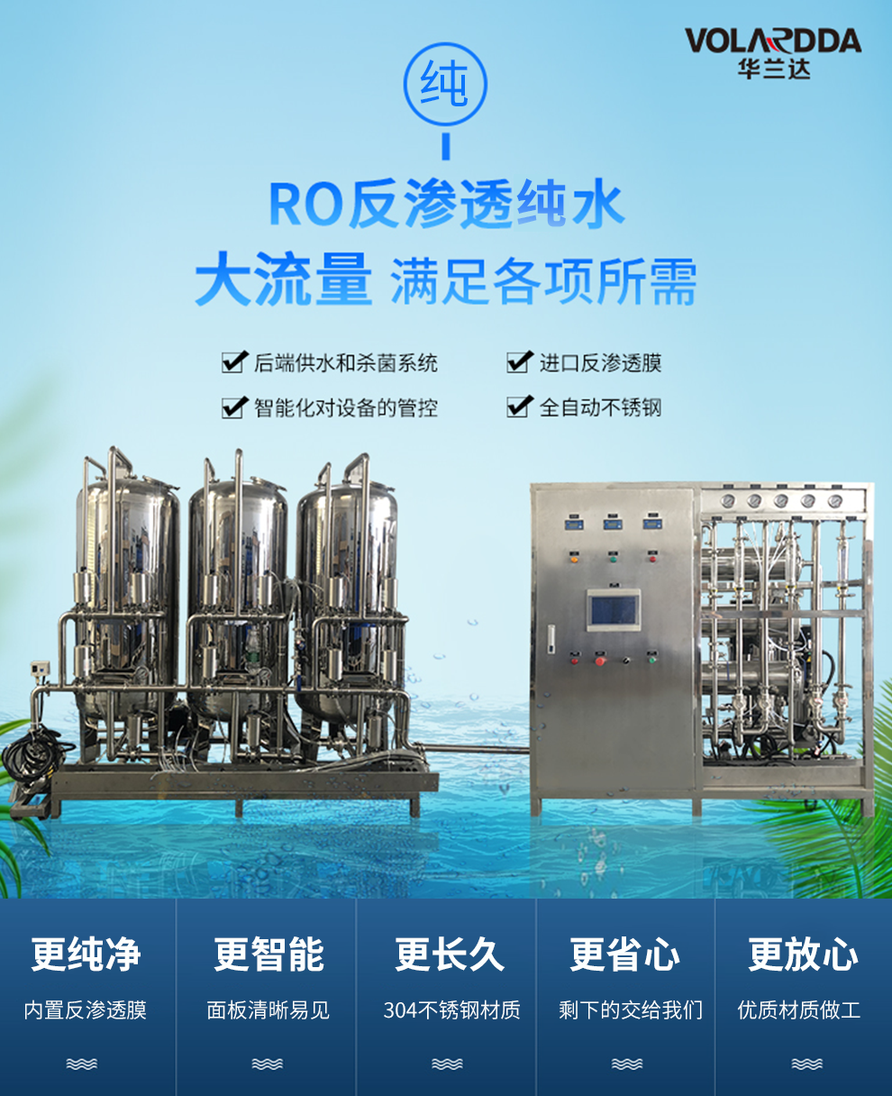 由于反滲透膜分離技術的先進、高效和節能特性,各部門領域均得到廣泛的應用,已有大型的反滲透水處理設備用于海水淡化,苦咸水凈化及工業廢水處理。利用反滲透脫鹽,可制備純水或超純水用于半導體、集成電路制造用水、發電廠鍋爐用水、醫藥行業用水、化工行業用水、飲料行業用水及其他行業(化妝品、印染、電鍍等)用水。利用其脫水濃縮特性,還可用來濃縮果蔬汁、牛奶、中藥等。