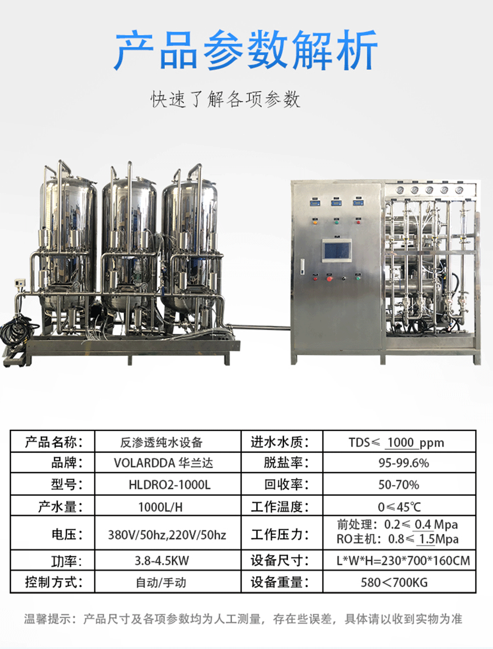 2、脫鹽率:反滲透系統>99%(根據客戶終端用水要求,可定制單級或雙級反滲透機)