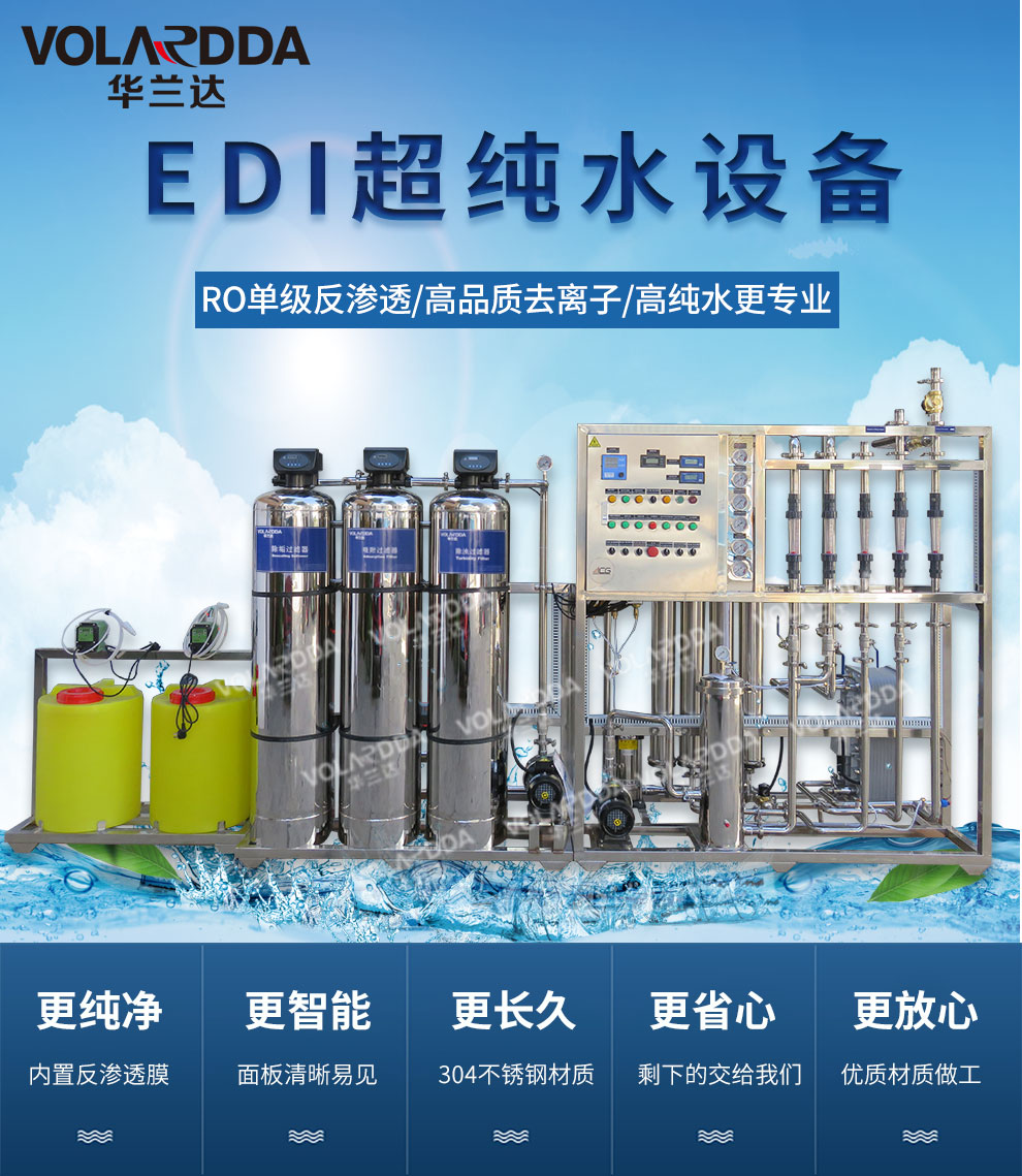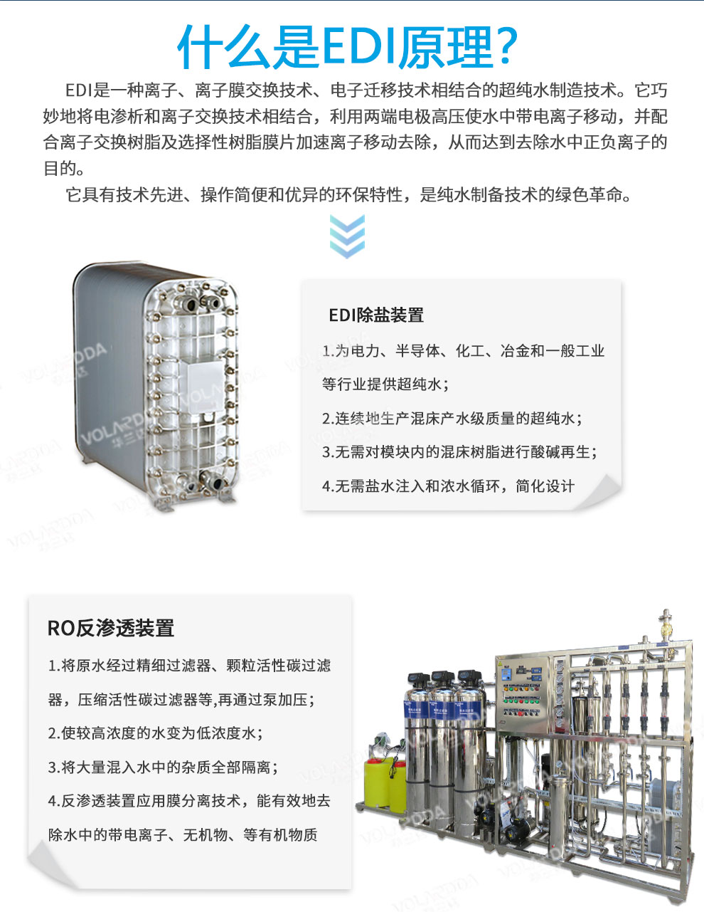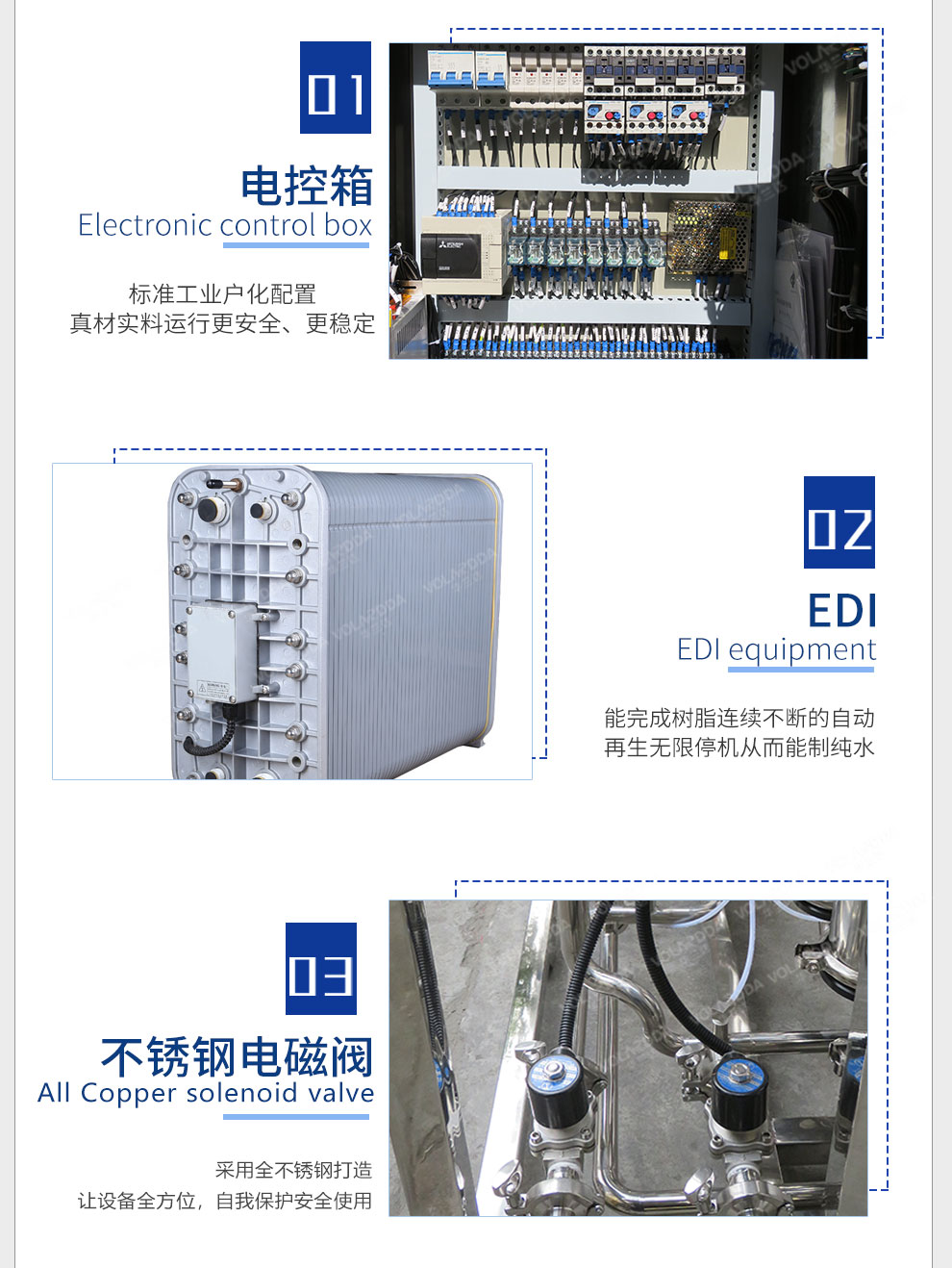 1.可連續生產,產水電阻率高≥ 15 MΩ.cm