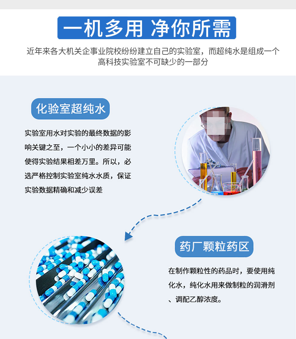 2、化工工藝用水、化學藥劑、化妝品等用純水。